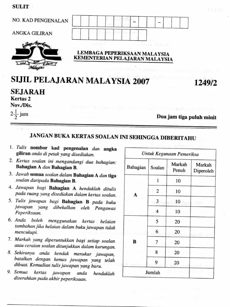 Soalan Jawapan Kertas 3 Sejarah Spm 2014. Sila hubungi cikgu yati. Koleksi soalan percubaan Sejarah SPM semua negeriBerikut adalah koleksi kertas soalan percubaan trial papers berserta skema jawapan untuk subjek Sejarah peperiksaan Sijil Pelajaran Malaysia SPM dari setiap negeri bagi tahun 2018 2019 dan 2020.